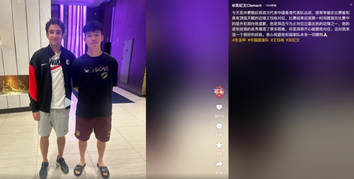 赛后宾纪文更新个人社媒:“今天是休赛期后我首次代表中国香港代表队出战,很荣幸在比赛能和具有顶级天赋的边锋王钰栋对位,比赛结束后我第一时间就我在比赛中的意外犯规向他道歉。